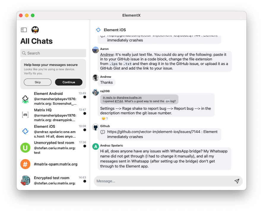 And last but not least, ElementX is very close to getting e2e encryption support!