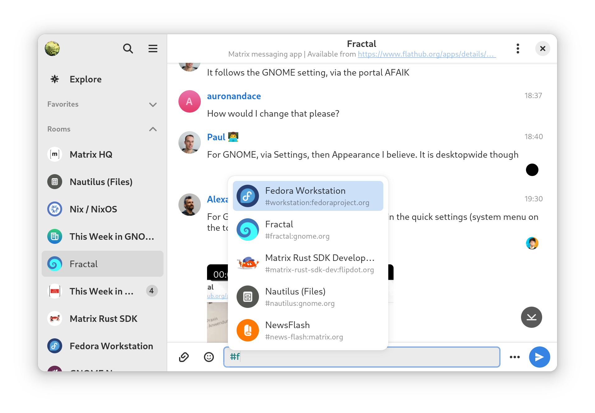 - Fractal can open Matrix URIs, it is even registered as a handler for the