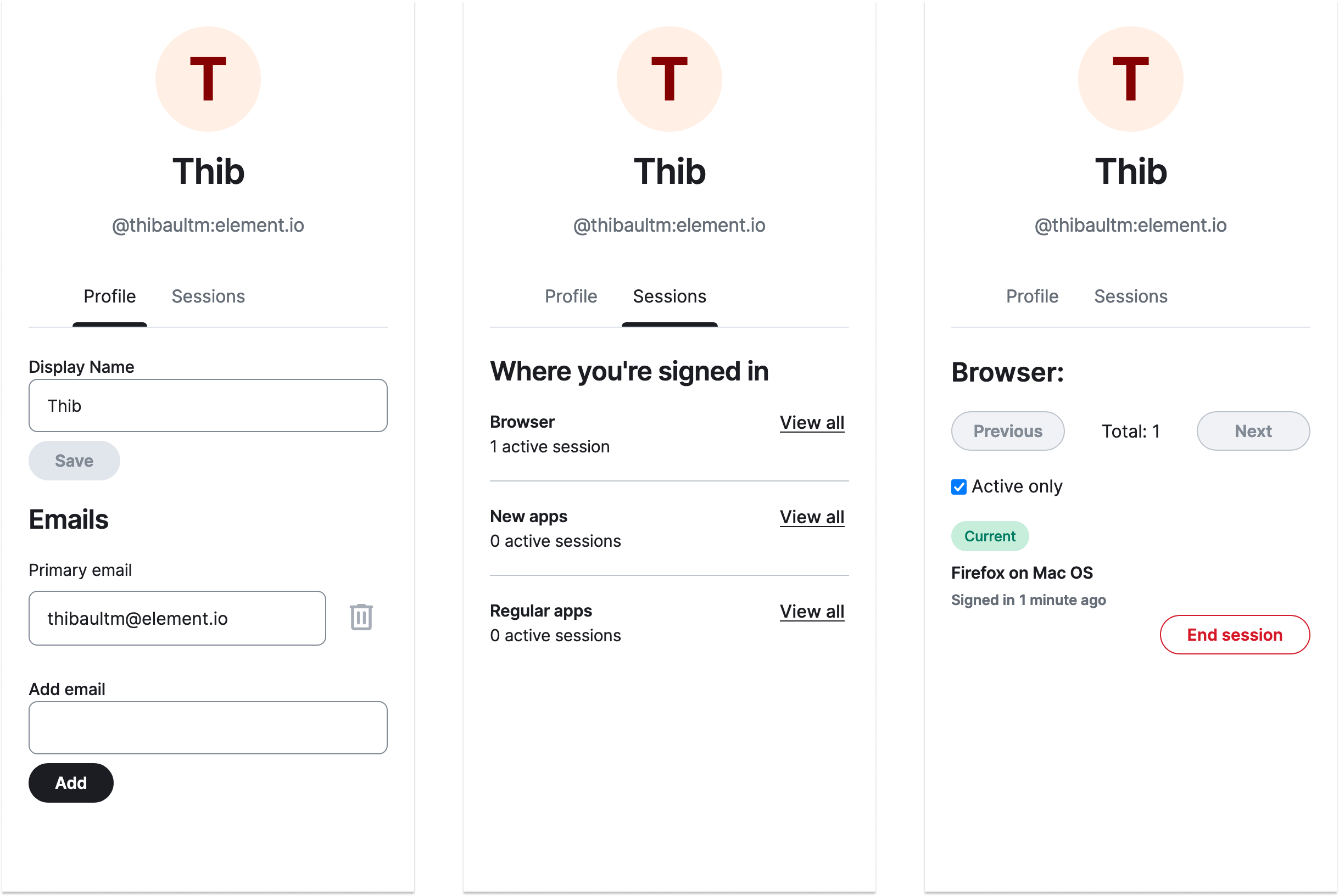 While current Matrix Access Token can expire thanks to MSC2918, this best practice didn’t make it to most of the clients of the ecosystem. If the access token of a user was leaked for one reason or another, they wouldn’t notice since this wouldn’t create a new session, and the leaked token would be valid forever. Please note that thanks to E2EE, attackers who gain access to a Matrix Access Token would not be able to read the encrypted content in encrypted rooms.