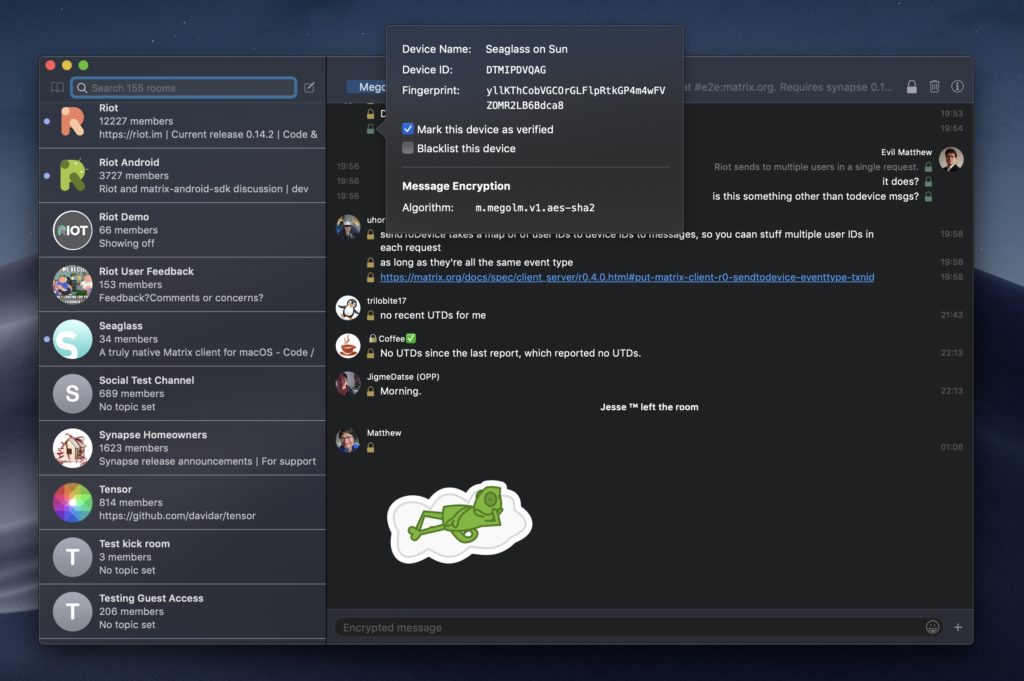 - Lots and lots of E2E implementation work in general; backups, cross-signing, and verification.